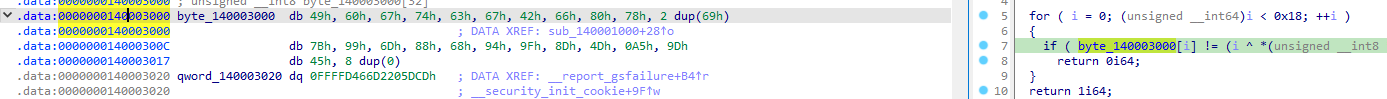 첫 글자 C 비교과정을 보면 rcx의 값이 rsp+8 주소로 이동한다. rcx는 문자열의 주소값일 것이다. rsp+8에는 문자열의 주소값이 계속 위치한다. mov eax,1로 eax에 1이 저장되고 imul rax,rax,0는 rax에 0이 저장된다. imul a, b, n이면 a=b*n 형식으로 실행된다. mov rcx, qword pt ss:[rsp+8] 결과 rsp+8에 있던 문자열의 주소가 rcx에 저장된다. movzx eax, byte ptr ds:[rcx+rax] 결과 문자열 첫 글자가 eax에 저장된다. cmp eax, 43은 eax- 0x43 연산을 하여 결과값이 0이면 ZF를 1로 세팅한다. 만약 같았다면 je chall1.7FF6F1E01023가 실행되어 다음 문자를 비교할 것이다. 만약 다르다면 xor eax, eax 다음 jmp chall1.7FF6F1E0128E가 실행되어 종료하게 된다. 따라서 옆에 한 글자씩 출력되는 문자들이 FLAG가 된다.