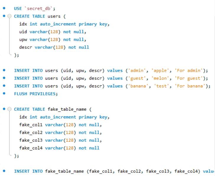 fake_table_name과 fake_col의 이름을 알아내기 위해 sql injection을 수행한다.