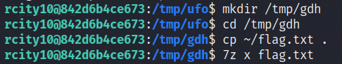 명령을 차례대로 입력하면 flag가 나온다. 마찬가지로 /tmp 내부에서 작업해야한다.