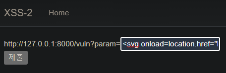 XSS-1과의 차이는 vuln 페이지에서 <script>문이 실행되지 않는 것이다.