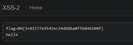 XSS-1과 동작 방식은 동일하다. flag 페이지에서 입력하면 FLAG 값이 check_xss 함수에 전달되고 admin(127.0.0.1)이 vuln 페이지에 param 인자 값을 설정하여 요청하면서 cookie에 저장된 FLAG 값을 memo 페이지에 출력하는 것이다.