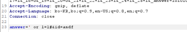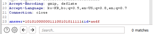 id엔 어떤 값을 넣어도 출력만 된다. 따라서 answer의 인자를 Burp Suite를 이용해 조작한다.