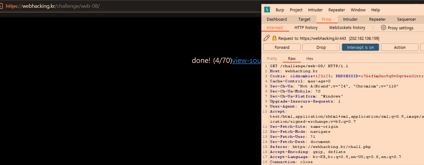 Burp Suite를 이용해 메시지를 가로챈 후 User-Agent를 수정한다.