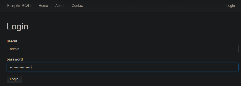 userid에 admin을 넣고 password에 " or userid="admin 을 넣었다. 결과적으로 아래의 쿼리가 완성된다.