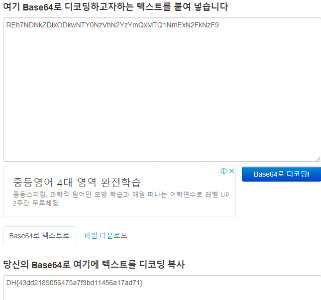 온라인에 제공되는 base64 디코더를 이용한다.