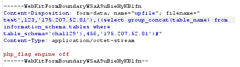 #(주석) 뒤에 부분은 아마 기존 쿼리의 ' , 시간, 'IP') 부분이 남아있을 것이다. 참고로 group_concat(칼럼명)은 해당 칼럼의 필드값들을 ',' 로 구분하여 합친다.