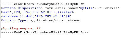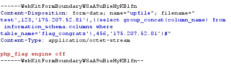 INSERT INTO('테이블명') VALUES('파일명',시간, 'IP') 쿼리가 실행되기 때문에 BURP SUITE를 이용하여 filename 부분을 다음과 같이 조작한다.